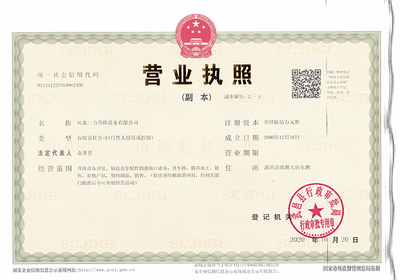 河北三力升降設(shè)備有限公司,1995年建廠(chǎng),是中國(guó)工程機(jī)械工業(yè)協(xié)會(huì)會(huì)員單位,是生產(chǎn)升降機(jī)、鋁合金升降機(jī)、剪叉式升降機(jī)、液壓升降機(jī)、移動(dòng)式升降機(jī)、四桅柱和多桅柱升降機(jī)、套缸式升降機(jī)、壁掛式升降機(jī)、雜物貨梯、傳菜機(jī)以及升降平臺(tái)、裝卸平臺(tái)、高空作業(yè)平臺(tái)等系列產(chǎn)品的專(zhuān)業(yè)廠(chǎng)家,是較早從事液壓升降設(shè)備研制和生產(chǎn)的廠(chǎng)家之一。持有國(guó)家質(zhì)檢總局頒發(fā)的《特種設(shè)備制造許可證》和《特種設(shè)備安裝改造維修許可證》,以及國(guó)家權(quán)威機(jī)構(gòu)“遼寧省安全科學(xué)研究院”出具的鋁合金升降機(jī)《型式試驗(yàn)報(bào)告》,生產(chǎn)設(shè)備齊全,企業(yè)實(shí)力雄厚。